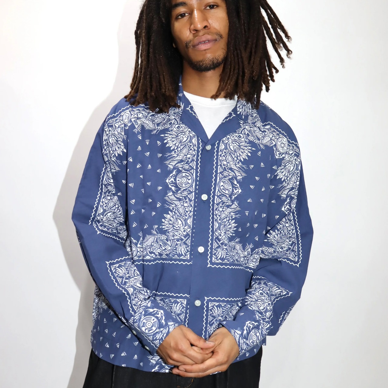 【WOODBLOCK】 LS OPEN COLLAR BANDANA SHIRT