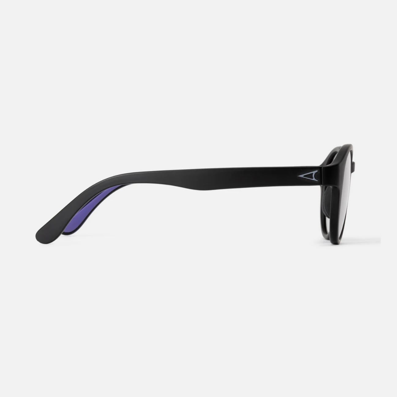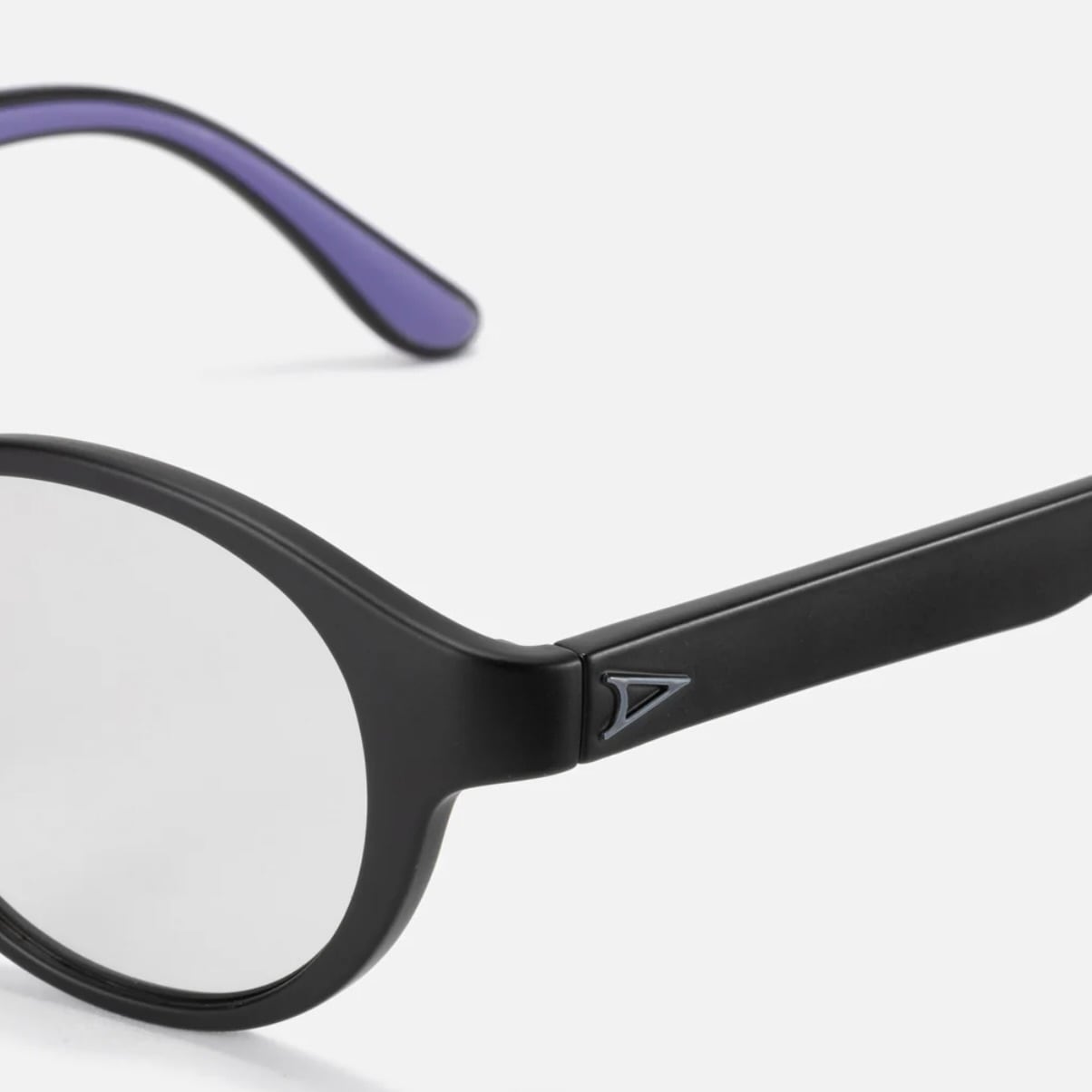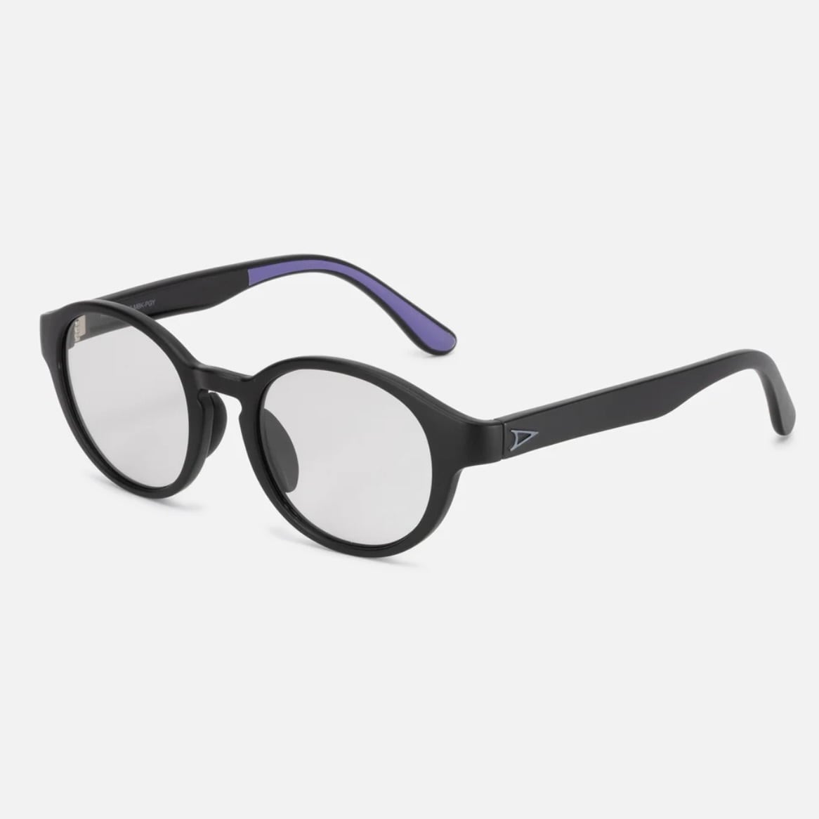 フレームはマットブラック、レンズは紫外線量により明るさが変わる調光レンズ。