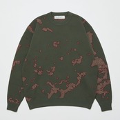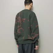 シーズナブルグラフィックデザインをジャガード織りで再現したミドルゲージクルーネックセーター。