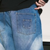 深い股上にバックポケットは少しドロップめに配置されており、ウエストで履いても腰で履いてもバックポケットが見える仕様。