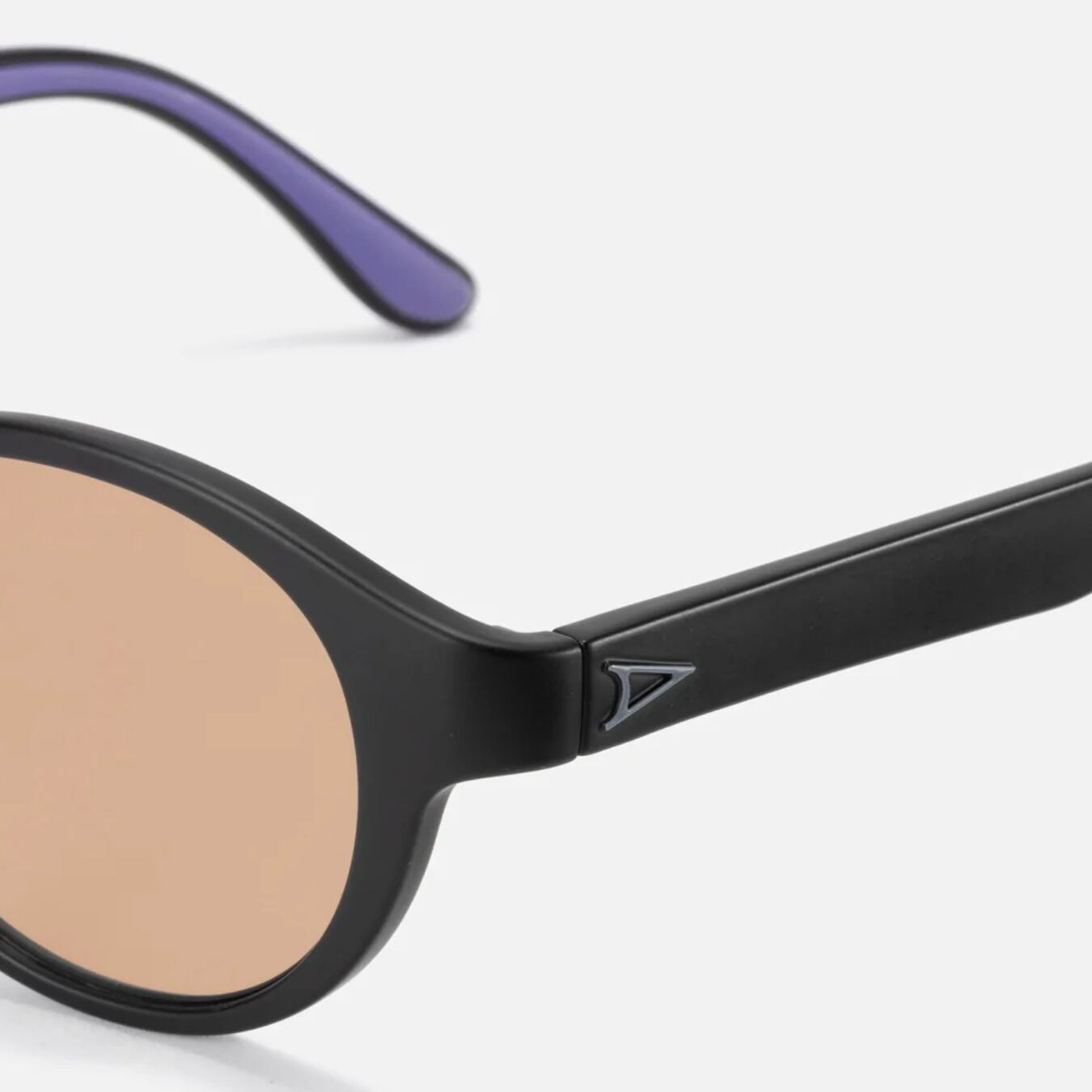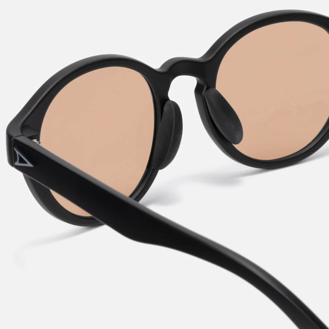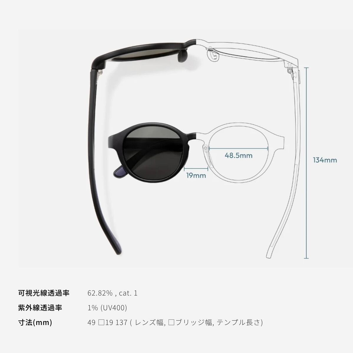 フレームはグロスブラック、レンズは夜間や室内でも掛けやすいライトブラウン。