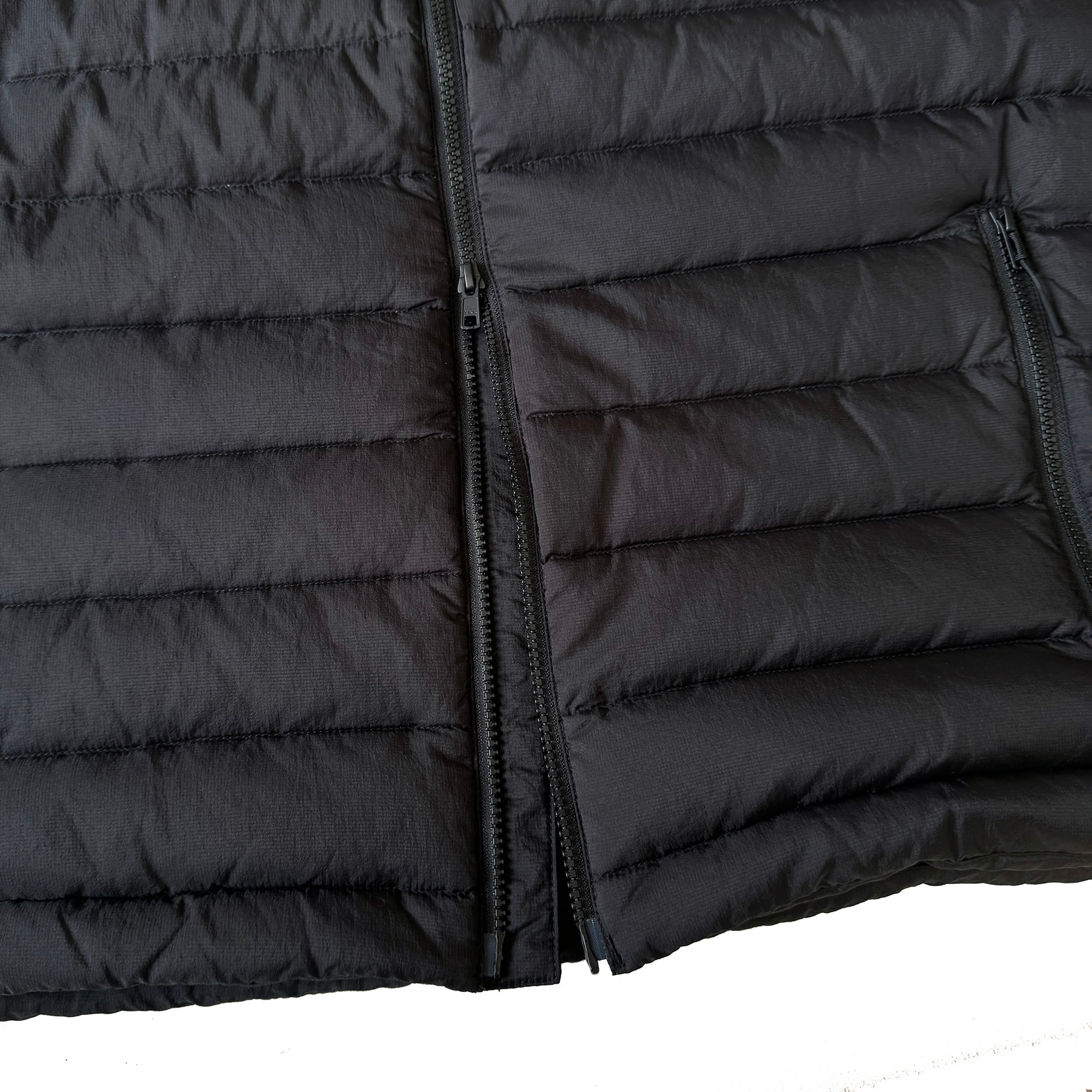 潔い横段キルトには800FLPのホワイトダックダウンを充填、裏地は通常の高密度タフタより柔らかく、ぬめり感の風合いと高級な表情が特徴です。