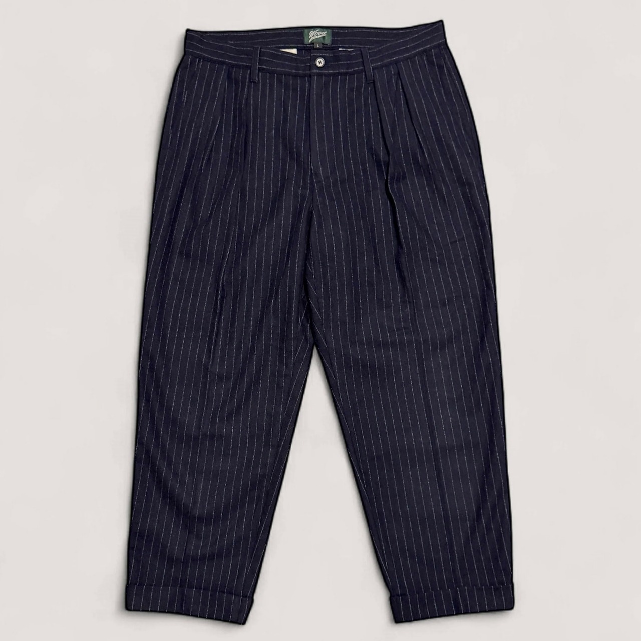 【WOODBLOCK】 2 TUCK STRIPE WOOL TROUSER (Navy)