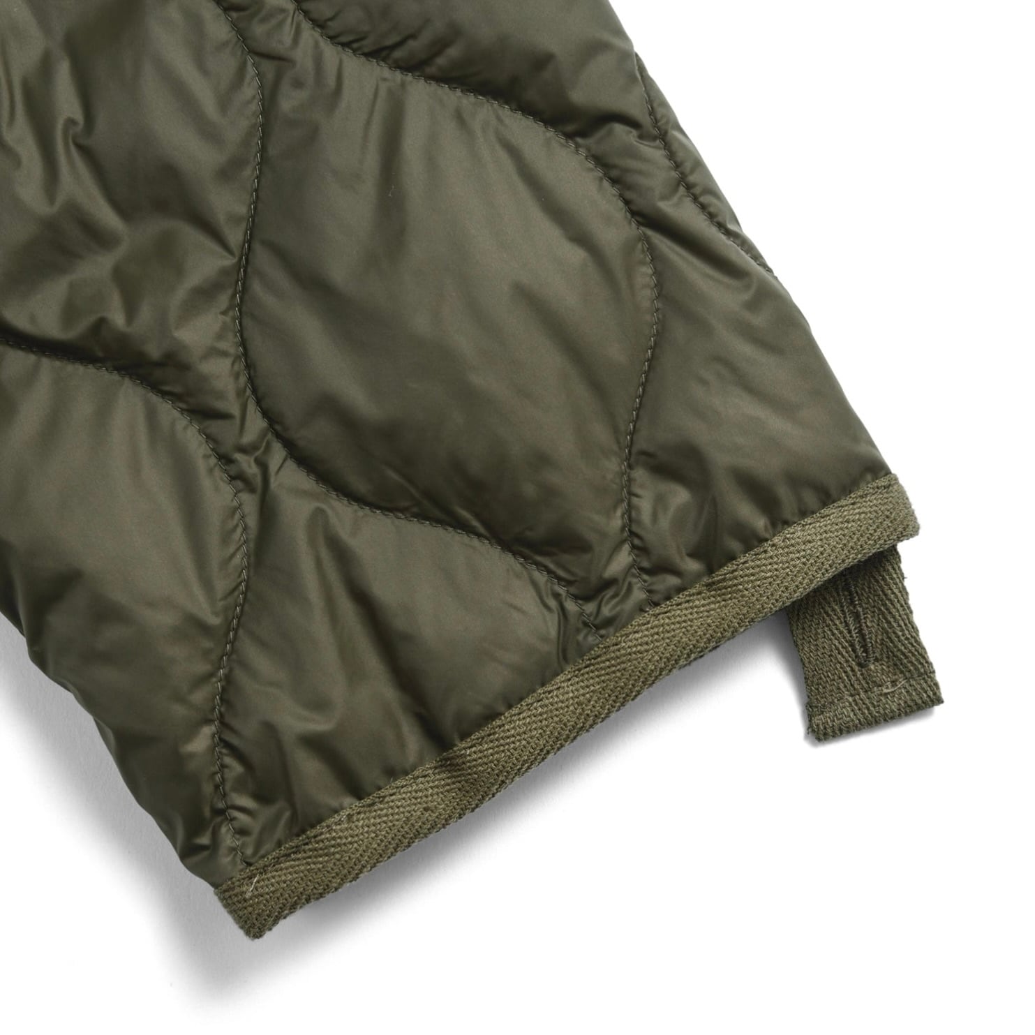 ヘチマキルトのダウンステッチが、ミリタリー感を演出。
