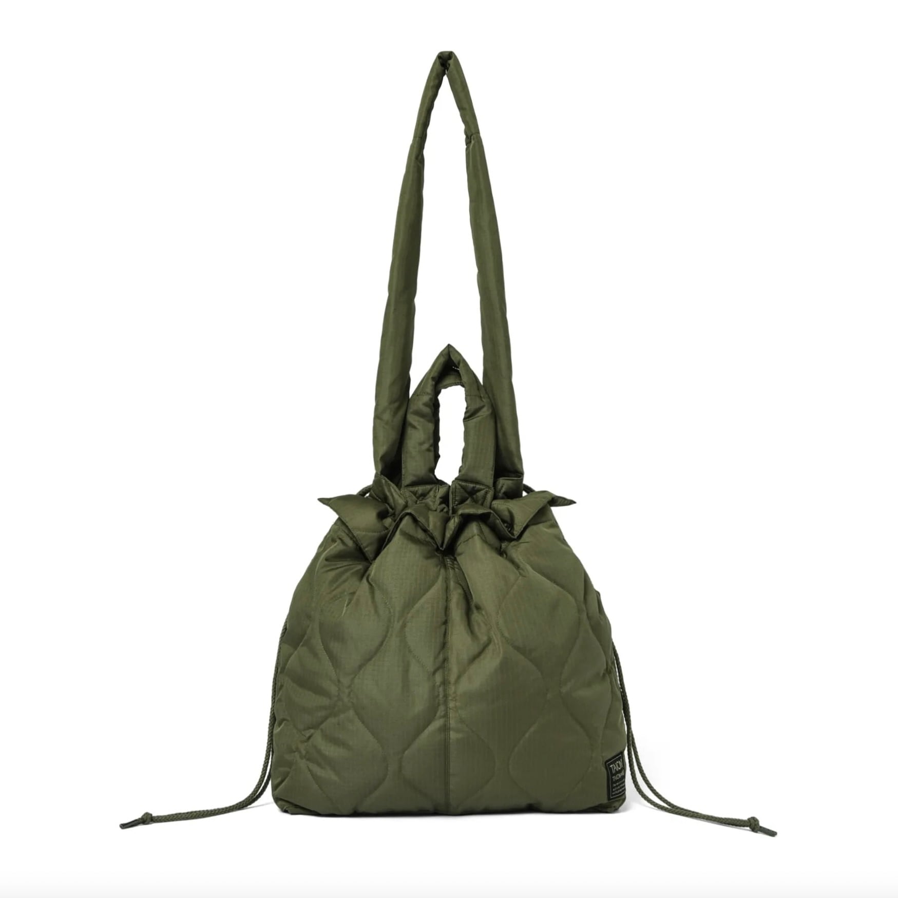 バッグ口を絞ると巾着バッグに変化し、スタイルに合わせて2WAYで楽しめます。